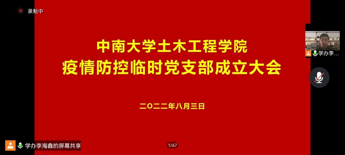 抗疫有我,中南大学国产又黄又猛又粗又爽疫情防控临时党支部成立大会顺利举行