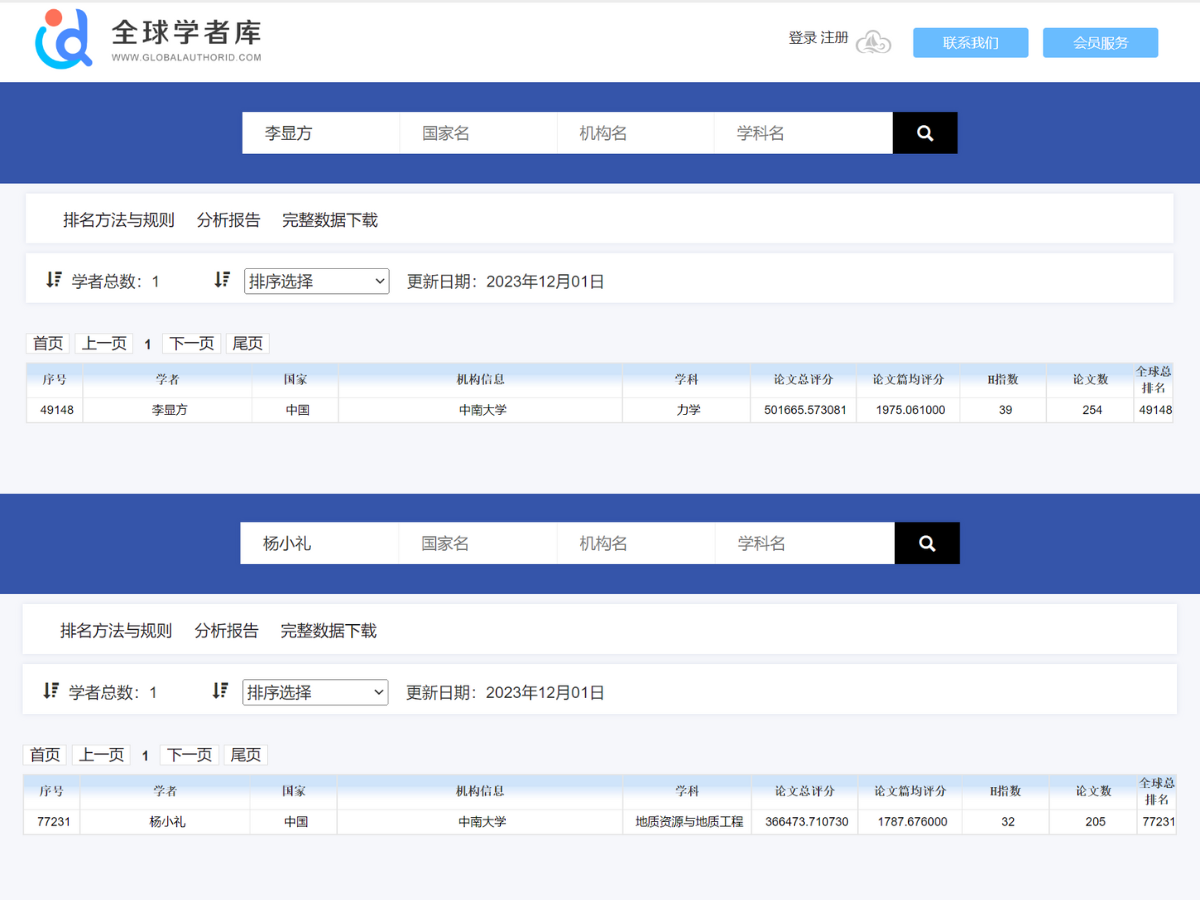 近日,全球学者库网站公布了“2023全球学者学术影响力排名 (终身学术影响力榜)”, 国内共有8029名学者入选,中南大学国产又黄又猛又粗又爽李显方教授、杨小礼教授分别入选力学学科、地质资源与地质...