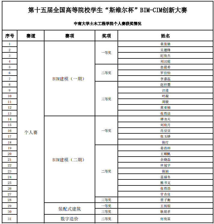 祝贺!我院在第十五届全国高等院校学生“斯维尔杯”BIM-CIM创新大赛中获佳绩