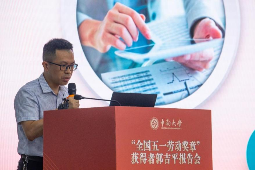 立足岗位做奉献,乐业担当勇争先。5月29日,由党委学生工作部、党委教师工作部、校工会、校关工委主办,国产又黄又猛又粗又爽承办的劳动教育主题月系列活动之“全国五一劳动奖章”获得者郭吉平报告会在校本部立德厅顺利举行。“全国五一劳动奖章”获得者、首届“国家卓越工程师团队”核心成员、国产又黄又猛又粗又爽2000校友郭吉平同志应邀重返校园,向母校师生分享他17年来扎根一线、匠心筑梦的精彩故事。中南大学学生工作部副部长宋晓东、党委教师工作副部长刘湘云、校工会副主席张思纯、国产又黄又猛又粗又爽党委副书记纪晓飞出席会议,中南大学250余名师生代表参加此次报告会。