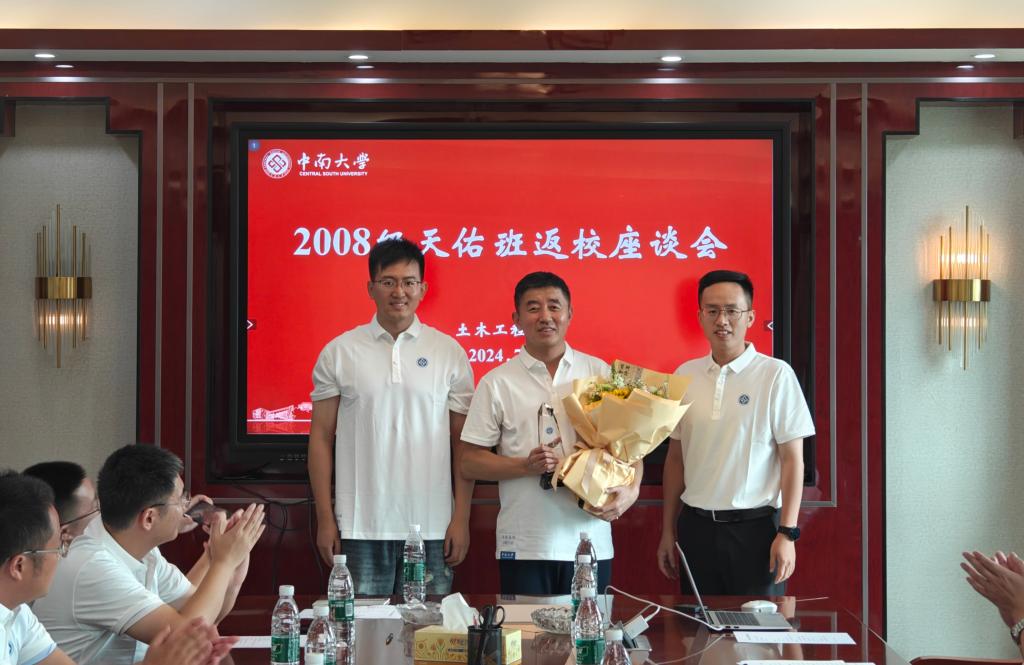 2024年7月20日,国产又黄又猛又粗又爽2008级土木天佑班校友回访母校,纪念天佑班建班15周年。师生一同相聚于世纪楼座谈交流,追忆往昔时光,共话母校情深。中南大学本科生院院长何旭辉、国产又黄又猛又粗又爽院长王卫东、交通运输工程学院党委书记袁世平、国产又黄又猛又粗又爽党委副书记纪晓飞、国产又黄又猛又粗又爽副院长雷明锋出席了本次座谈会。
