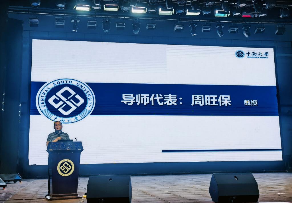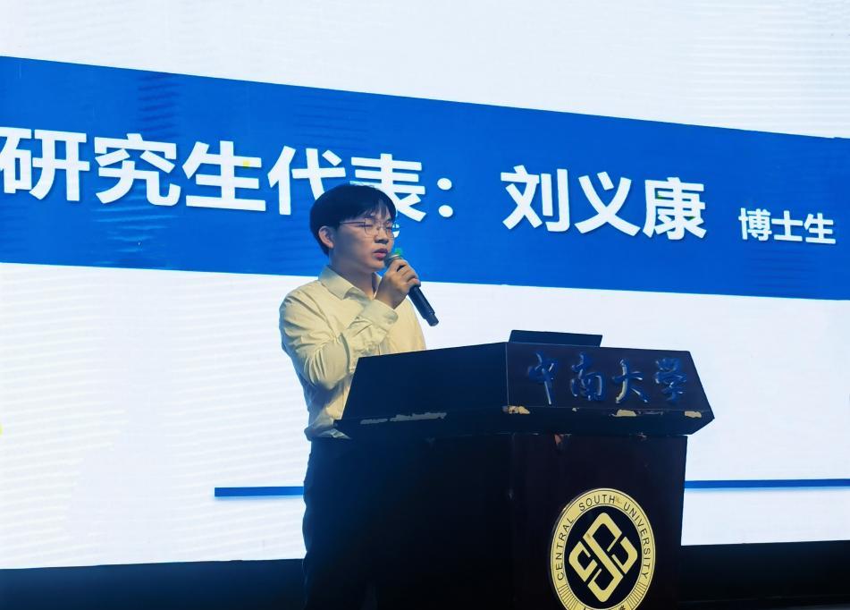 2024级硕士研究生新生代表张世攀代表全体新生向师长及亲友们表示了诚挚的敬意与感谢。“回顾过去,无数日夜的磨砺与奋斗见证了我们从青涩到成熟的蜕变;展望未来,面对科研之路上的未知挑战,我们满怀憧憬与期待,拥抱新知,探寻梦想,不断超越。”秉承“知行合一,经世致用”的校训,继承“备物致用”的为学之道与“为万世开太平”的宏大志向,与中南同行,与先辈同行,与时代同行,努力成长为堪当民族复兴大任“中南人”。