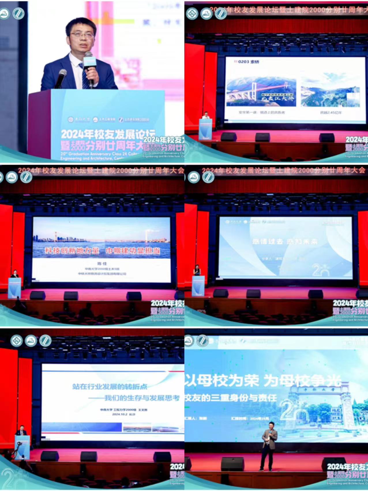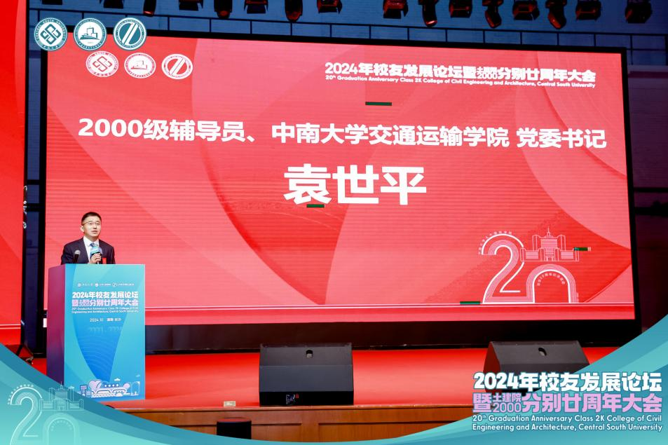 金秋十月,丰收在望。10月2日,中南大学铁道校区大礼堂迎来一场盛大的聚会——2024年中南大学国产又黄又猛又粗又爽校友发展论坛暨土建院2000级分别廿周年大会成功召开。中南大学党委副书记黄健陵,副校长何旭辉,高速铁路建造技术国家工程研究中心主任余志武,铁道校区党工委书记彭满如,后勤保障部党委书记乔硕功,国产又黄又猛又粗又爽党委书记李磊,院长王卫东,副书记纪晓飞,副院长张升、国巍、雷明锋,院校友会常务副会长郭峰,2000级时任领导及任课教师李亮、罗才洪、曾育兰、周一峰等,以及来自全国各地的300余名校友代表汇聚一堂,共襄盛举。本次大会以加强校友间沟通、分享经验为核心,旨在共同探索土木工程领域的最新发展趋势,并寻求广泛的合作契机,携手推动行业进步。