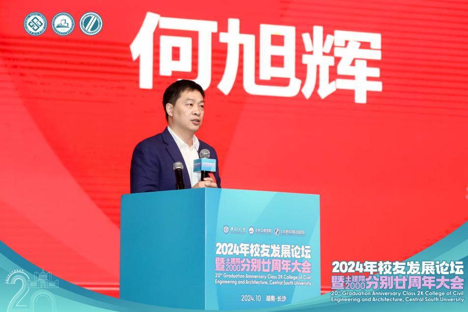 2000级授课老师、中南大学副校长何旭辉发表讲话,他指出校友们因缘际会,相互扶持,彼此成就,共同成长。作为中南大学合并后的首届学生,校友们见证了学校高速发展,毕业后为国家基建贡献了青春力量。面对行业变革,他勉励校友们坚守希望,顺应时代发展趋势,努力向信息化、智能化、绿色化转变,同时保持定力,终生学习,以更加开放的心态和更加务实的行动去迎接未来的挑战,争取在新工业革命的趋势下取得更大发展。