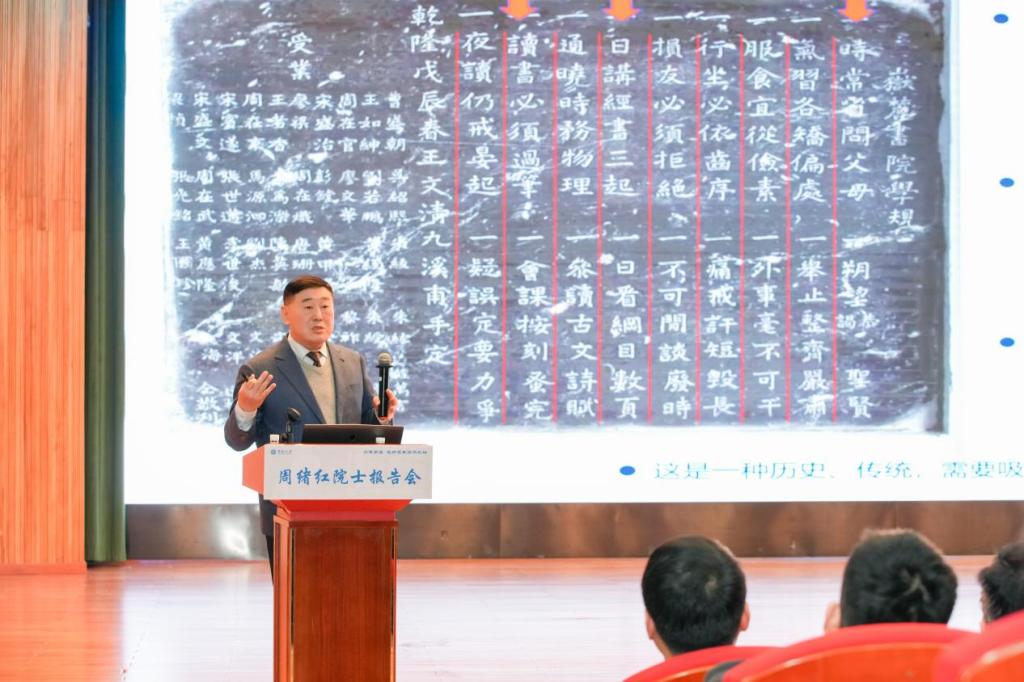 周院士紧密结合自身的学习科研实践经历,深入阐述了这座 “千年庭院” 对其产生的深远影响。他满怀深情地感慨道,岳麓书院所蕴含的深厚人文精神,如同一股清泉,润泽涵养了他的心灵世界;“勤奋努力,持之以恒” 的卓越治学精神,恰似一盏明灯,照亮了他的学术前行之路;而其取之不尽、用之不竭的教育思想,更如一把智慧之匙,启迪了他的治校方略与理念。