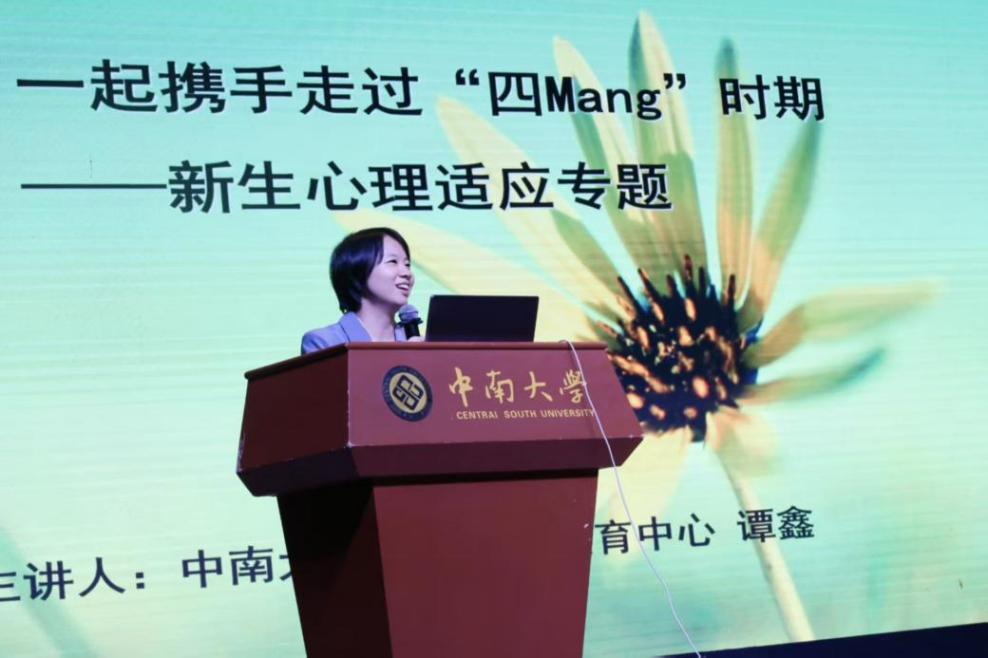 心理健康教育环节,心理健康教育中心谭鑫老师为新生带来心理适应辅导,教导同学们如何调节情绪、保持积极心态,乐观面对大学生活中的苦难与挫折,收获灿烂人生。