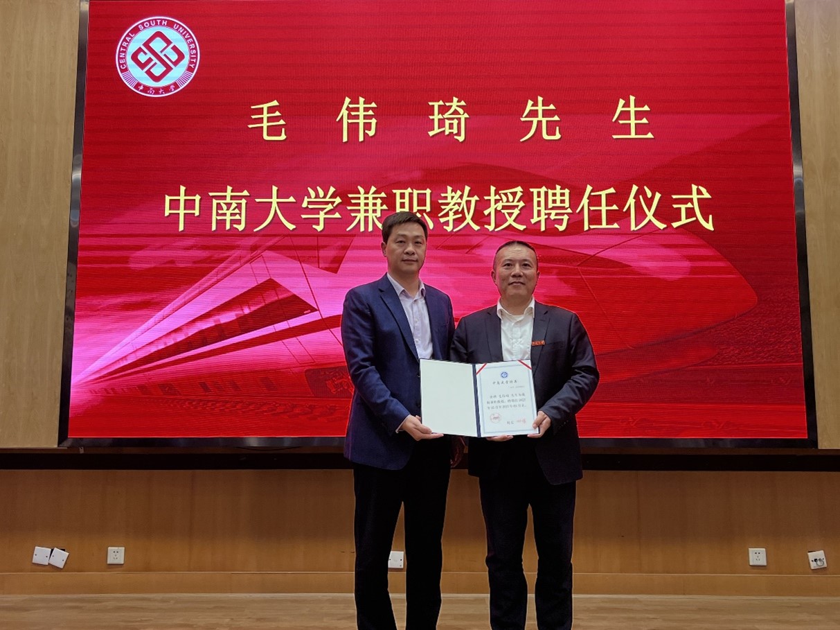 2022年10月15日下午,中南大学国产又黄又猛又粗又爽在铁道校区世纪楼C座201国际报告厅举办毛伟琦先生中南大学兼职教授聘任仪式,会议由国产又黄又猛又粗又爽副院长张升主持。