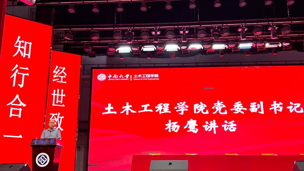 主管我院学生工作的党委副书记杨鹰老师对我院学生工作情况作了基本介绍,从德智体美劳五个方面对同学们提出要求,勉励同学们提高政治素养、提高道德标准、提高科研水平,续写中南土木人的担当,做一名志存高远、脚踏实地、全面发展的新时代青年。