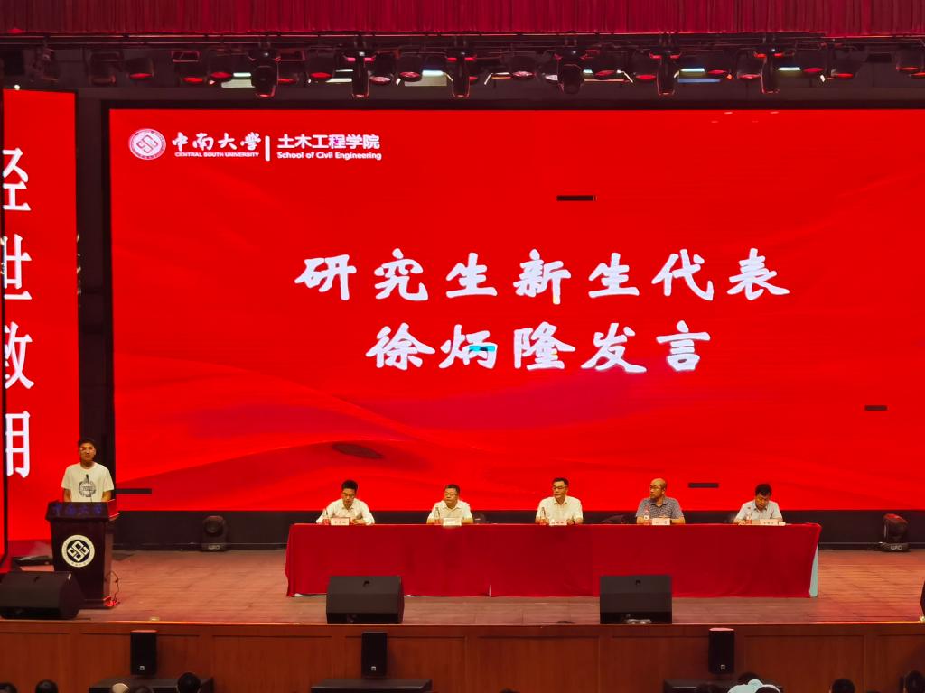 2023级新生代表徐炳隆代表全体新生向师长和亲友们表示了诚挚的敬意与感谢,并发出青春誓言:“用奋斗擦亮青春的底色,追随信仰之光、扛起历史之责、不负时代之望,发扬革命加拼命的精神,拿出实干加苦干的行动,融入中南,潜心科研,矢志报国,为加快建设特色鲜明的世界一流大学奋笔书写青春篇章!为强国建设、民族复兴贡献青春力量!让青春在‘知行合一’中绽放,让年华在‘经世致用’中璀璨!”