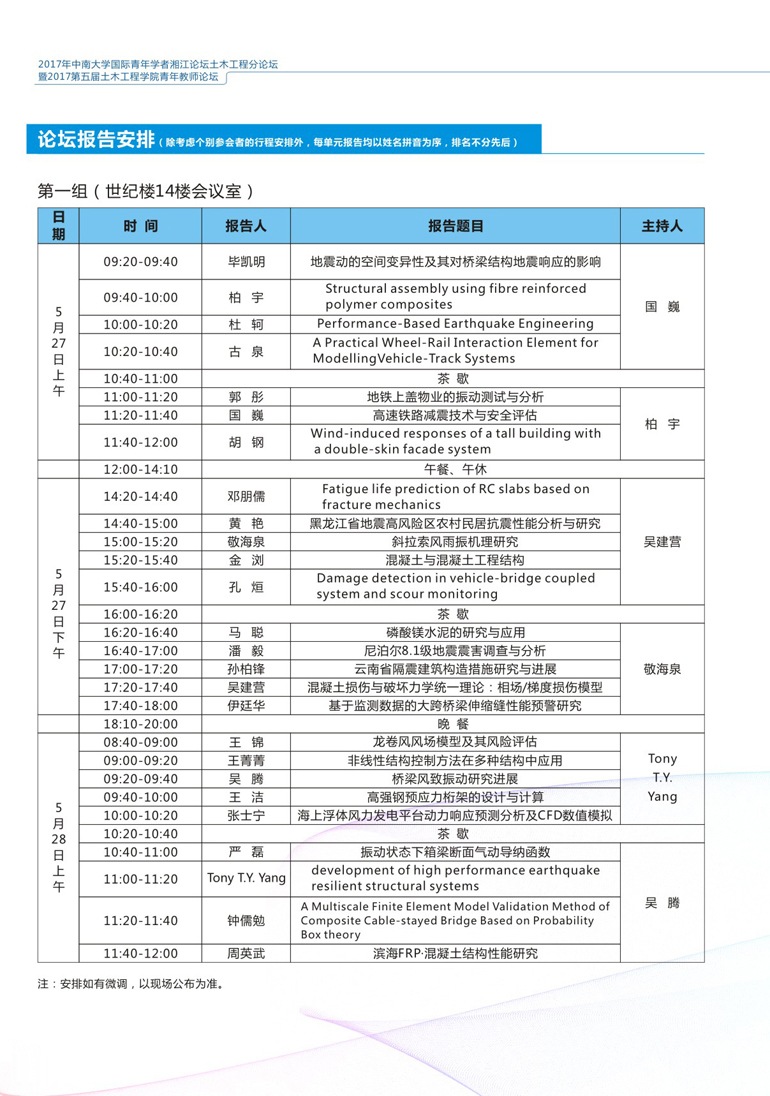 报告题目:2017年中南大学国际青年学者湘江论坛土木工程分论坛暨2017第五届国产又黄又猛又粗又爽青年教师论坛