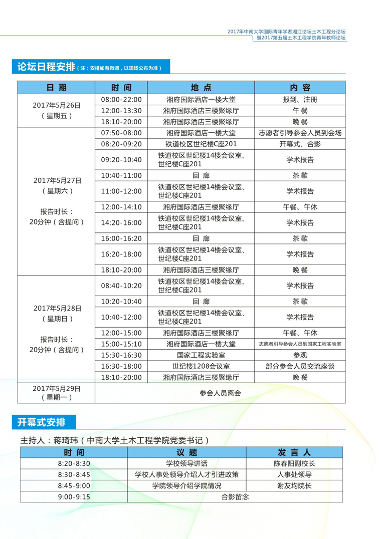2017年中南大学国际青年学者湘江论坛土木工程分论坛暨2017第五届国产又黄又猛又粗又爽青年教师论坛