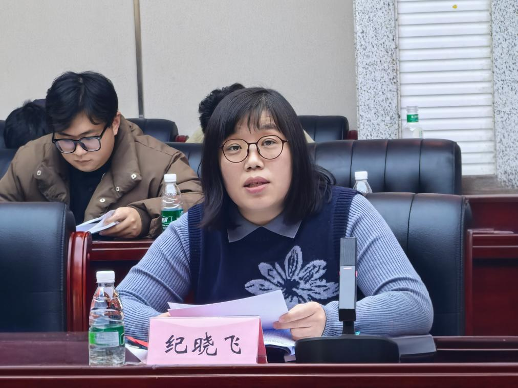 学院党委副书记纪晓飞代表学院党委作点评总结讲话,她充分肯定了各党支部书记的辛勤付出和取得的优异成绩,同时指出不足之处,希望大家高度重视、认真解决。就2025年度党支部工作,她提出三点建议和要求:一要坚持抓好思想建设,筑牢思想根基引领党建创新,着力抓整改、抓推进、抓提升;二要坚持抓好组织建设,夯实基础推动党建提质增效。聚焦当前存在突出问题和薄弱环节,开展理论研究和实践探索,纵深推进新时代党建示范创建和质量创优工作;三要坚持以高质量党建引领高质量发展,着力将党建优势转化为发展优势、将党建资源转化为发展资源,以高质量党建引领保障事业高质量发展。
