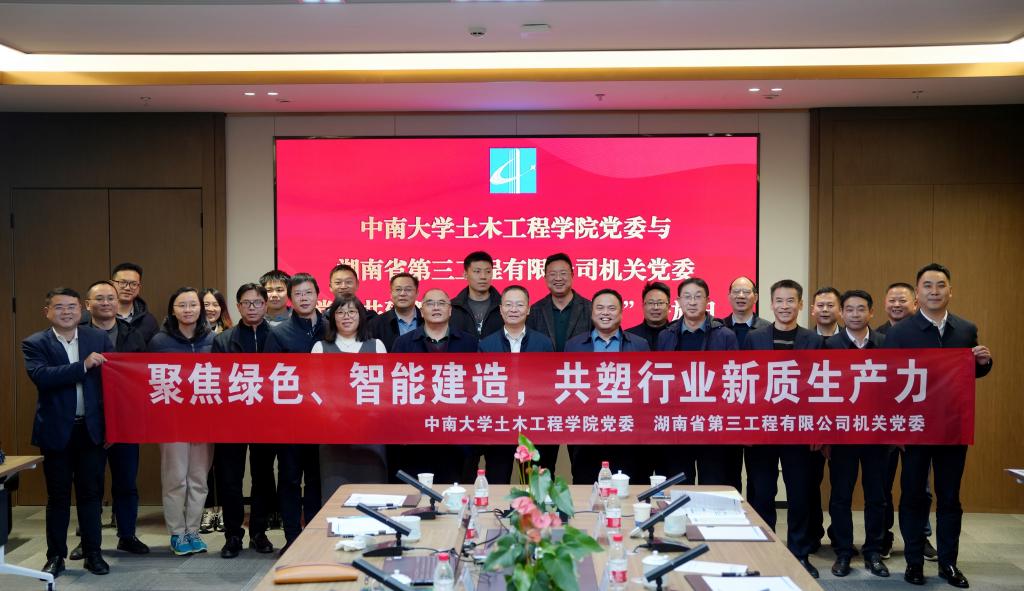12月5日下午,学院党委书记李磊带队赴湖南省第三工程有限公司开展党建共建暨“共同上一堂党课”活动。三公司总经理刘建伟,副总经理兼总工程师孙志勇,副总经理李运武,部分校友代表,学院党委副书记纪晓飞,副院长雷明锋,教建工党支部部分教师参加活动。