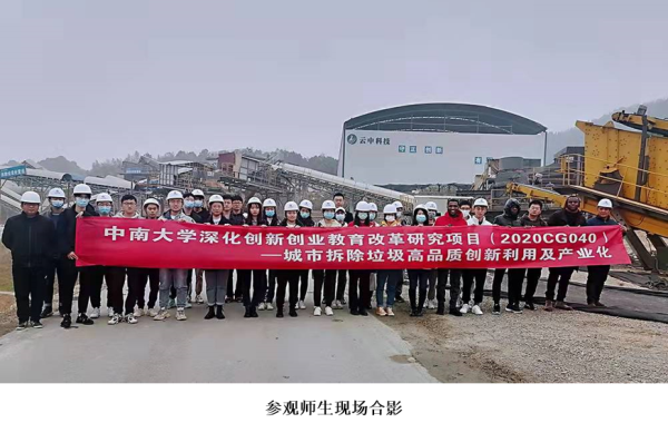 下午三点三十分,师生们来到建筑固废综合利用基地之一的油松基地,现场负责人带领同学们近距离调研了固废处置线路。云中科技油松基地位于长沙市岳麓区,主要资源化处置利用装修垃圾、拆除垃圾、工程垃圾、道路沥青垃圾等四类建筑垃圾,是湖南省第一个综合性的建筑垃圾资源化利用基地,也是湖南省建筑垃圾资源化利用的示范基地。