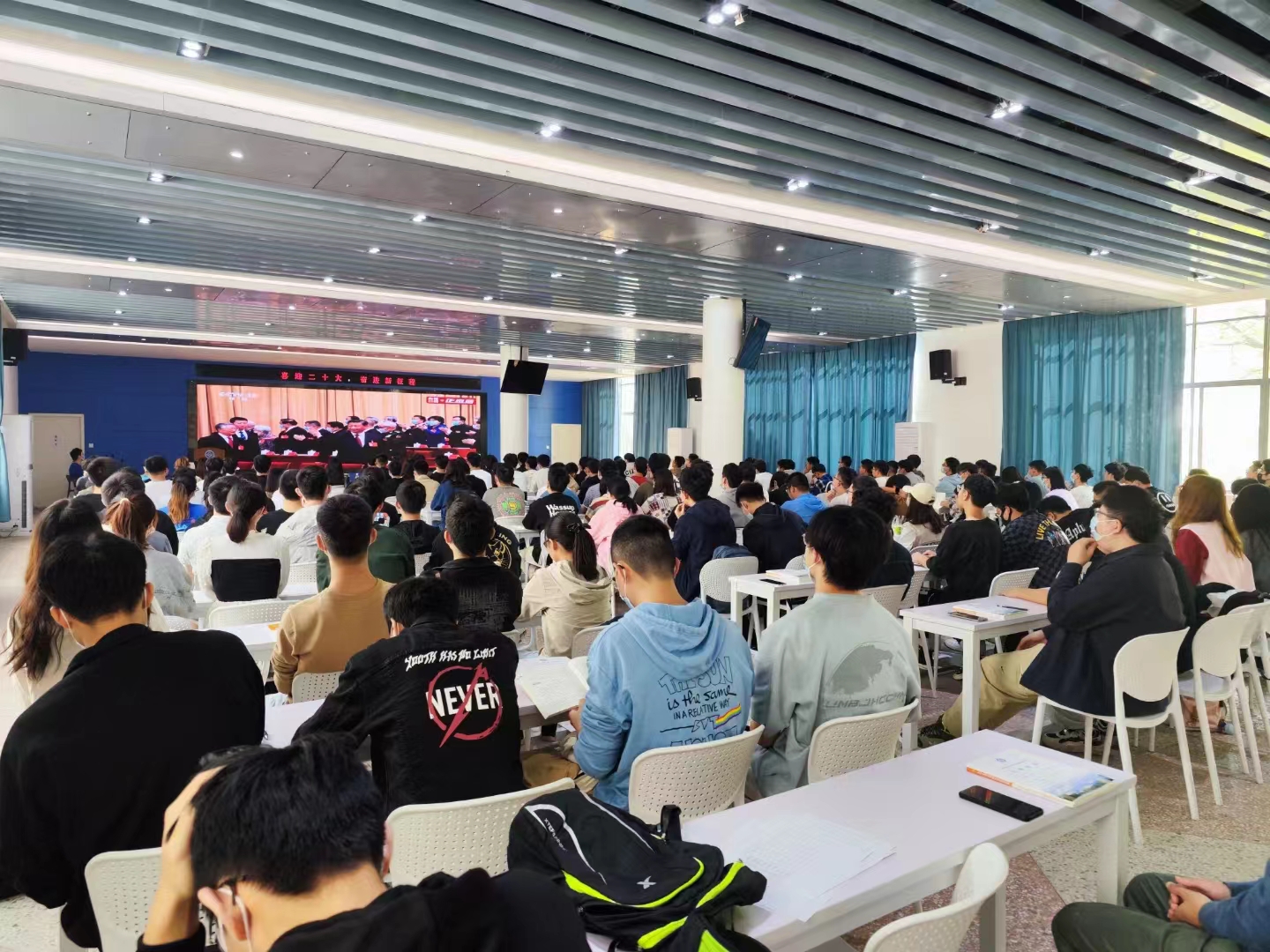 为深入学习贯彻习近平新时代中国特色社会主义思想和党的二十大精神,2022年10月16日上午,国产又黄又猛又粗又爽组织师生在铁道校区世纪楼C201、立志厅、新校区A102等场地集体观看中国共产党第二十次全国代表大会开幕会直播,聆听习近平总书记代表十九届中央委员会所作的报告,学习领会党的二十大精神。学院党政领导班子成员、党委委员、全体师生党支部书记、党员代表、团学组织学生骨干共同收看学习。全体师生通过党支部、团支部或个人等形式认真收看二十大开幕会。上午十点,在庄严雄壮的国歌声中,大会正式拉开帷幕,全体师生认真肃穆,认真观看中国共产党第二十次全国代表大会开幕式,共同学习习近平总书记代表党的第十九届中央委员会向中国共产党第二十次全国代表大会作的报告。