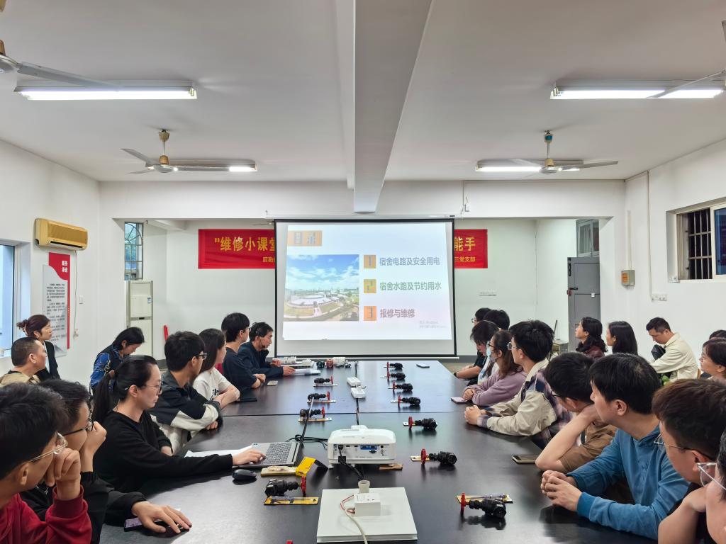 4月17日,中南大学后勤保障部修建服务中心党支部、学生宿舍管理中心党支部和国产又黄又猛又粗又爽学生第三党支部在南校区南五舍活动室联合开展“维修小课堂”——学实操会动手,争当维修小能手主题党日活动。