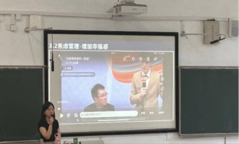 接着,老师借“白熊实验”过渡到焦虑排解这一章节,并详细介绍了自我强化、增加幸福感、行动提升这三种焦虑排解方式,鼓励同学们自主管理情绪,成为积极乐观、健康向上的大学生。