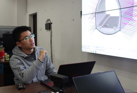 最后,为进一步了解中南大学铁道专业的实际工作,大家对研究生一、二支部部分课题组的相关科研成果参观学习。王卫东院长课题组的硕士党员肖淳钟同志以隧道结构为对象向大家介绍了课题组在铁路基础设施智能养维方向的研究内容,重点描述如何利用Bentley的MicroStation构建隧道数字孪生模型,扎扎实实做好铁路运营与维护,编织起经济腾飞、区域协同的坚实纽带。