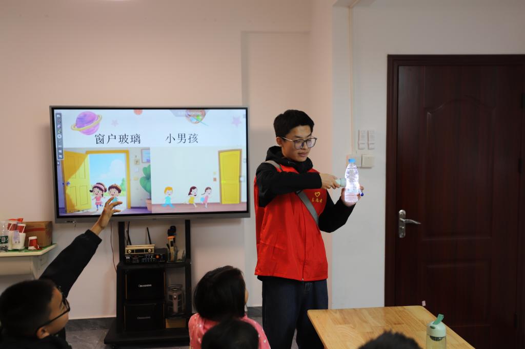 活动伊始,志愿者通过精心制作的 PPT,以图文并茂的形式向孩子们讲解纸杯投影仪的制作原理。结合生动的生活案例,科普了光的直线传播、成像原理等基础科学知识。通过趣味问答互动,孩子们逐渐理解如何通过简单的材料实现"小孔成像"效果。