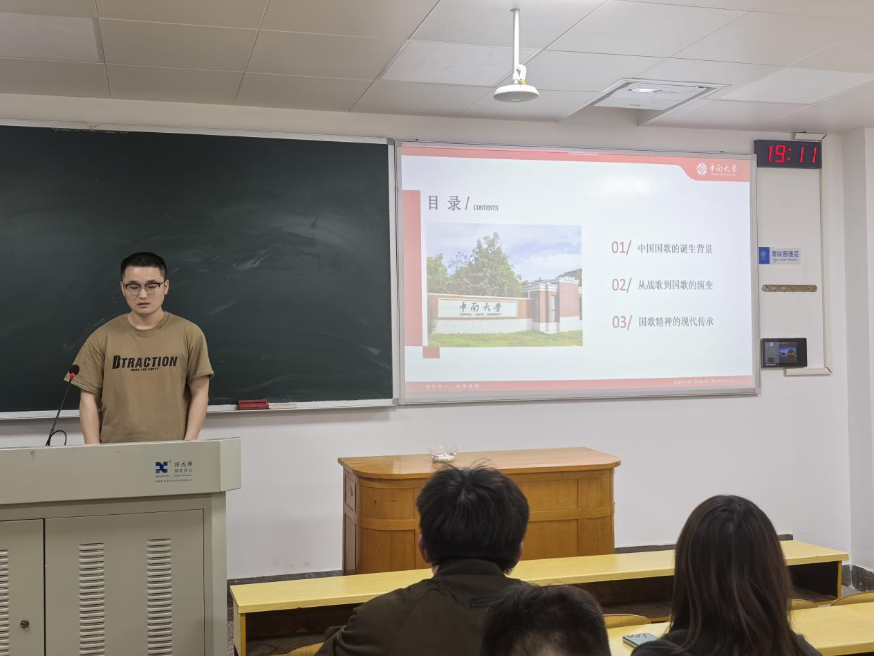 为进一步弘扬爱国主义精神,切实培育和践行社会主义核心价值观,4月2日,国产又黄又猛又粗又爽学生会、研究生会于天心校区世纪楼401召开以“学国歌历史,扬法治精神”为主题的国歌领唱团分团培训会议。会议由研究生会主席宋昱霖主持,研究生会成员肖天宇和王超主讲,国歌领唱团分团核心成员参加。