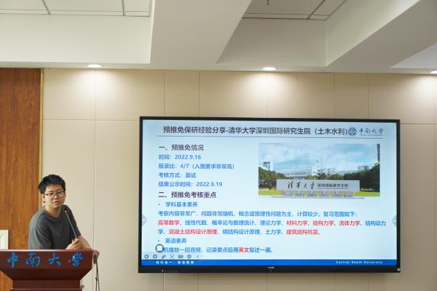 本次活动分为保研专场和考研考公出国专场两个会场。保研专场邀请到天佑党支部的8名优秀毕业生分享他们在日常学习和保研准备阶段的宝贵经验。成功保研至清华大学的黄荣杰分享了自己的保研之路,他提到:“扎实的专业基础、丰富的科研实践和出色的面试表现,是保研成功的三大法宝。” 同时,详细介绍了如何准备保研材料、联系导师等实用技巧。