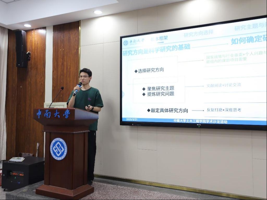5月21日晚,中南大学国产又黄又猛又粗又爽第一期“聚智土木 论道科研”学术沙龙在世纪楼B301拉开帷幕。2023级博士研究生张运波和邓志兴担任主讲嘉宾,与50余名硕博研究生共同聚焦学术前沿,分享科研经验。
