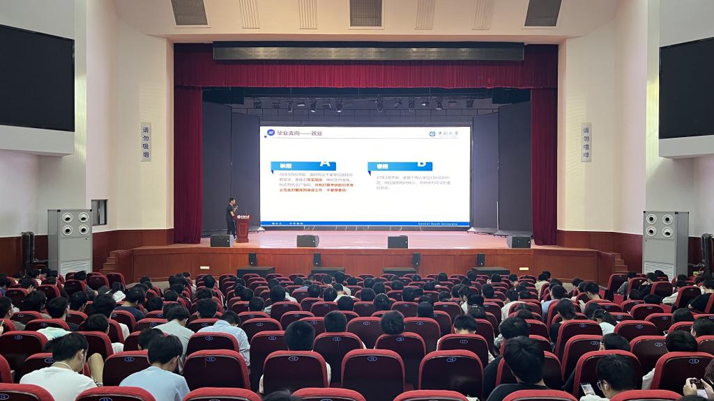大会开篇,学院特邀中南大学校友、卓引留学创始人李纪勇先生分享留学规划。李纪勇围绕热门留学国家选择、申请核心要求及时间规划展开,结合行业经验为同学们梳理留学思路,帮助大家明确不同阶段目标,解答留学相关疑惑。此外,他还为同学们梳理了 “大二夯实专业基础、大三备战标化考试与背景提升、大四集中申请” 的阶段性目标,帮助大家避开时间规划误区。
