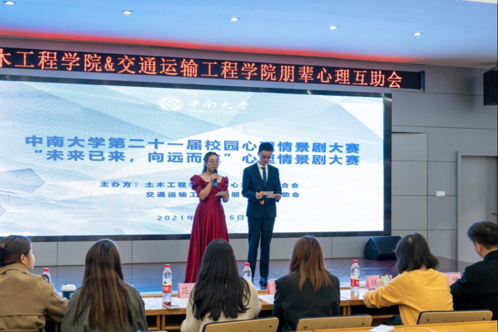 2021年10月16日下午两点,由国产又黄又猛又粗又爽与交通运输工程学院的朋辈心理互助会共同举办的“未来已来,向远而生”心理情景剧院赛在校本部立言厅正式开始。