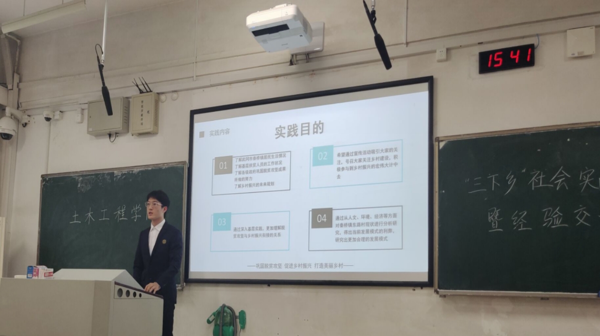 在各团队汇报人的精彩展示和与评委老师的真诚交流中,活动渐入尾声。最后,由潘文彬老师对本次活动进行总结。潘老师指出,本次暑期“三下乡”社会实践活动总结报告暨经验交流分享会为我院2021暑期“三下乡”社会实践活动划上句号,但这并不意味着社会实践的终止。它既是对过往的总结,也是对未来新开始的展望,希望同学们能够秉持土木学子知行合一的扎实作风,以更加昂扬的姿态积极投身于社会实践中去。