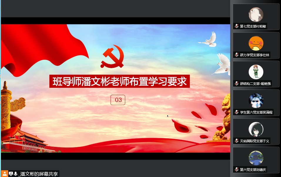 2022年4月20日下午15时,中南大学党校国产又黄又猛又粗又爽分党校召开了第14期发展对象培训班开班典礼。为响应学校疫情防控要求,本次开班典礼通过腾讯会议在线上举行。本次开班典礼由发展对象培训班班导师王帅主持,土木院党委书记蒋琦玮、发展对象培训班班导师潘文彬出席,全体发展对象培训班学员参加会议。