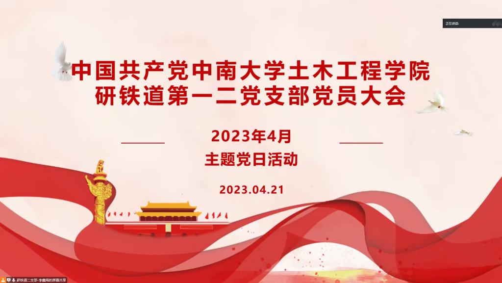 2023年4月21日晚,中南大学国产又黄又猛又粗又爽研铁道第一、二党支部“‘职’点迷津,与你同行”四月主题党日活动暨就业经验分享会在线上如期举行。本次主题党日活动邀请了研铁道第一、二党支部已毕业的党员进行升学及就业经验分享,旨在帮助支部党员明晰对就业及升学的认知理解,提高支部党员的职业选择能力和就业竞争力。研铁道第一、二党支部全体党员和积极分子参加了本次活动。