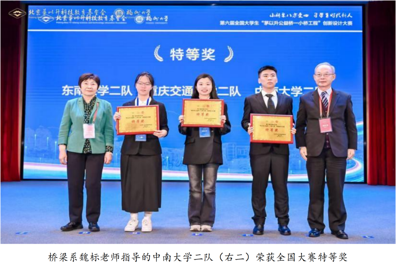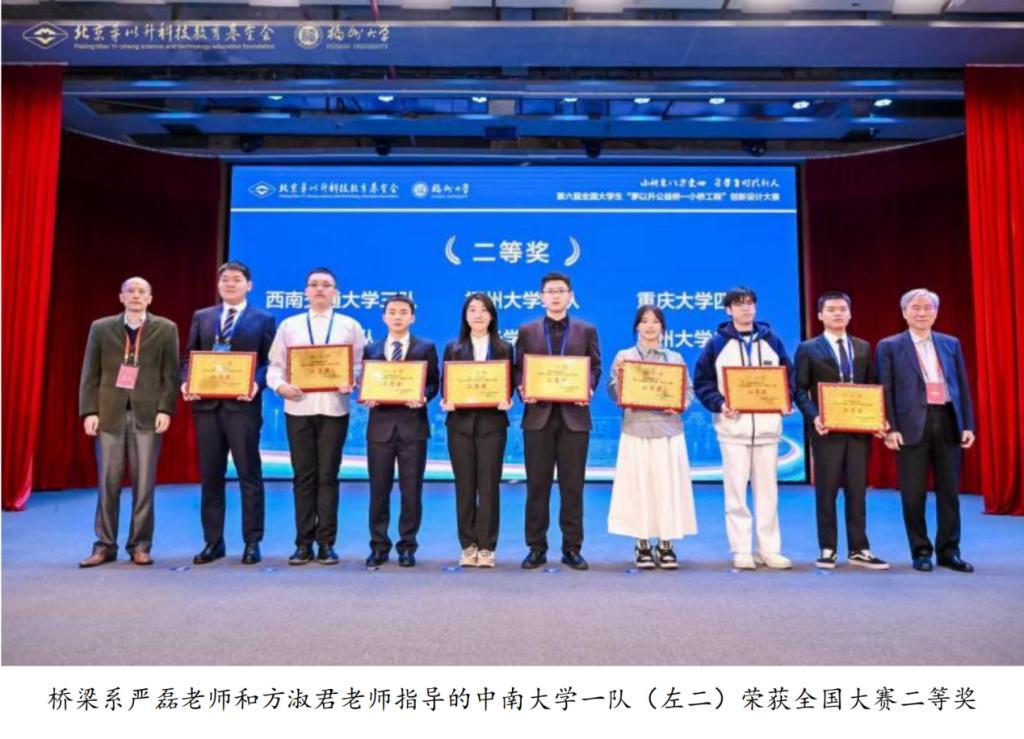 中南大学荣获第六届全国大学生“茅以升公益桥——小桥工程”创新设计大赛特等奖和二等奖