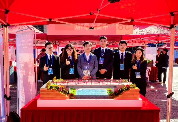 中南大学二队(成员李洪旭、任娅铭、全芷晴、陈雅轩、吴可),在桥梁工程系魏标老师的指导下,深入重庆市荣昌区吴家镇含珠桥村,结合当地实际、基本需求和文化背景,设计作品《棠漪桥》。棠漪桥选用工字型钢混组合梁,运用抗拔不抗剪连接件解决负弯矩区开裂,采用装配式智能建造技术,并且团队成员谨记中南大学“知行合一,经世致用”校训,自己动手制作沙盘模型,多次修改完善、趋向完美,在总决赛激烈的角逐中,获得大赛特等奖。