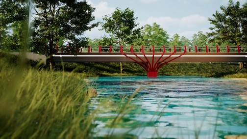 获奖队伍的小桥作品为毓秀桥,既满足当地车辆通行的需求,又着眼于经济性、实用性、公益性和环境友好性。同时,当地作为海棠花故乡,毓秀桥外观上融合海棠花的元素,增添桥梁的地域特色和民族氛围,也寓意着繁荣、美好以及坚强、勇敢、希望。此外,参赛选手特别选择了红色环保涂料作为栏杆的涂装,不仅是对十烈社区十位烈士的崇高致敬,也是对中华大地的一抹鲜艳中国红的热爱之情。