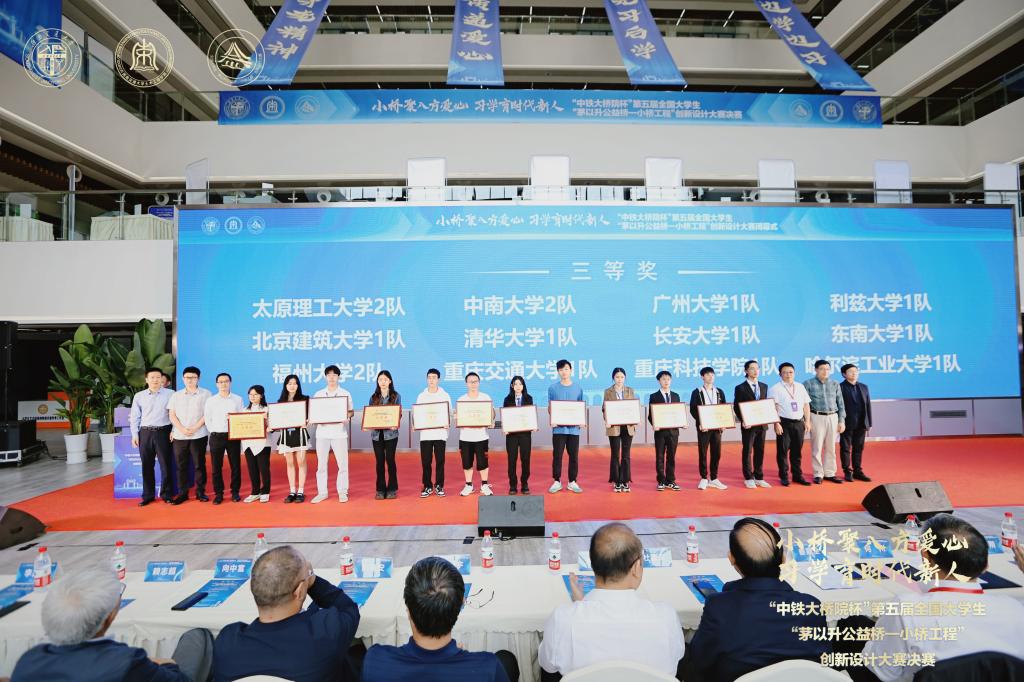 由北京茅以升科技教育基金会、西南交通大学联合主办,交通运输部直属机关团委、教育部高等学校交通运输类专业教学指导委员会、教育部高等学校土木类专业教学指导委员会支持,西南交通大学国产又黄又猛又粗又爽承办的“中铁大桥院杯”第五届全国大学生“茅以升公益桥—小桥工程”创新设计大赛于2023年9月21日—9月23日在成都举行。中南大学2队在经过激烈角逐后,荣获决赛团队三等奖。