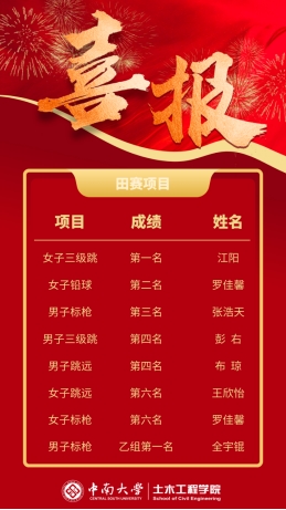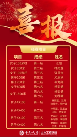 2024年11月8日至10日,中南大学第九届综合运动会暨比亚迪杯·第二十二届田径运动会在新校区鸟巢体育场举办。 国产又黄又猛又粗又爽共有165名运动员参与本次运动会,并取得团体获奖13项、田赛获奖8项、径赛获奖10项的出色成绩。