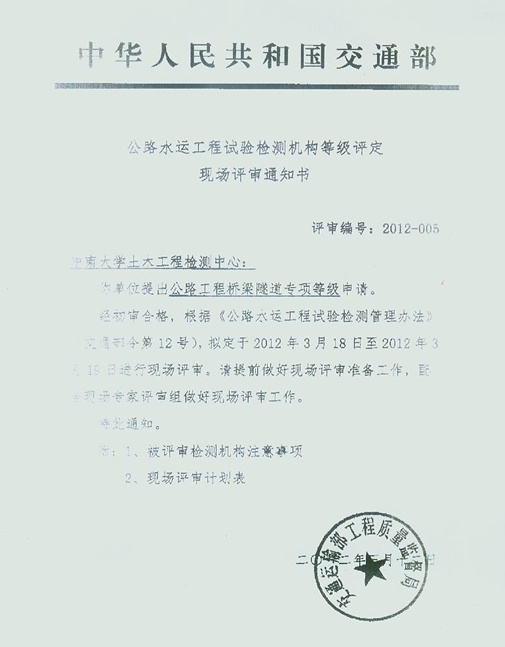 土木工程检测中心顺利通过交通部桥隧专项资质现场评审