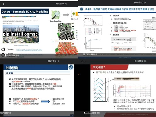 随后,各位青年学者依次作学术报告,分享了在土木工程领域的学习经历和取得的学术成就,展示了他们在研究领域的优势和创新点,加深了各位学者对彼此学术特长的认识和了解,为未来的合作奠定了基础。