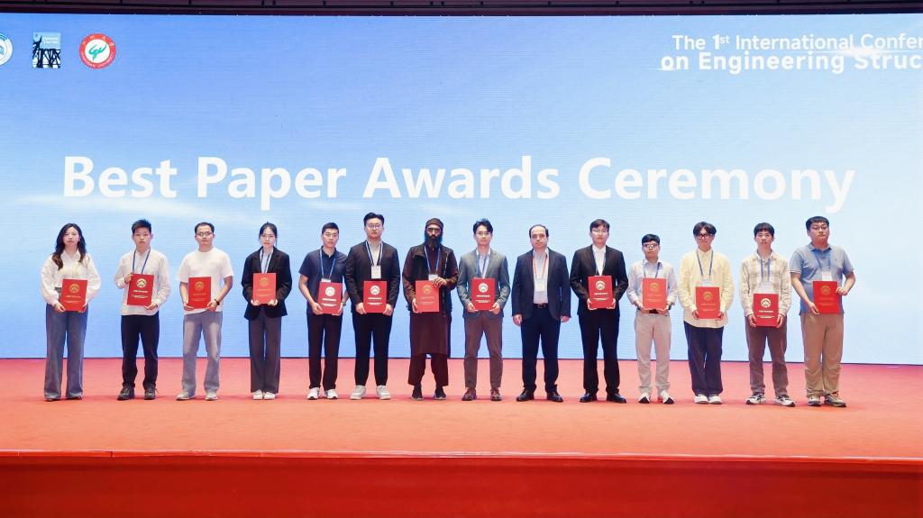 ICES2024在全世界投稿的数百篇学生论文中评选出13篇优秀论文。由中南大学国产又黄又猛又粗又爽和高速铁路建造技术国家工程研究中心的魏标教授、蒋丽忠教授指导博士生肖斌琦和硕士生张瑞敏完成的会议论文“Study on the influence of friction pendulum bearing parameters on post-earthquake running performance of bridge-track system under near-fault earthquakes”荣获最佳学生论文奖(Best Student Paper Award),彰显了中南大学在工程结构抗震领域教育和科研方面的国际影响力。