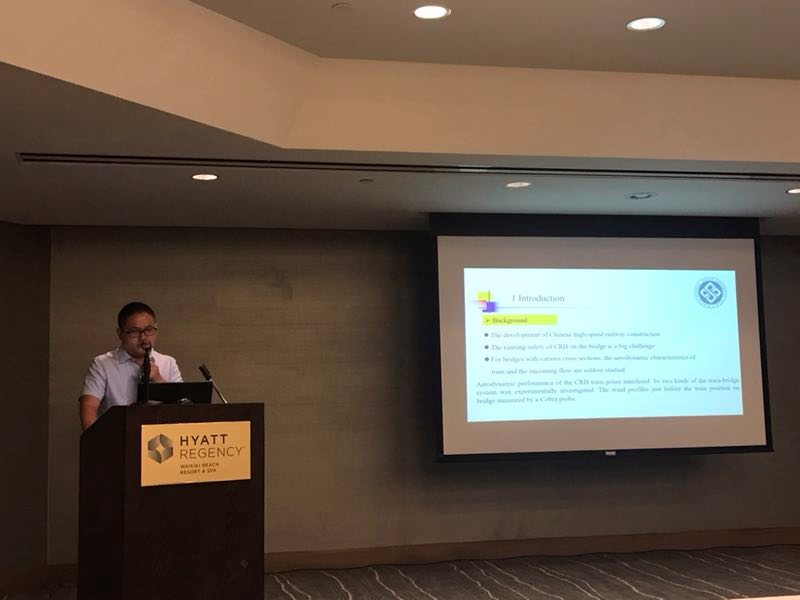 本次会议共录用学术论文一百三十余篇,内容涵盖了实验和现场测试、铁路桥梁、管理和生命周期-成本分析等18个研究主题。展示了桥梁结构试验、桥梁抗震,以及桥梁加固中取得的创新性成果以及出现的新思路、新方法。我校共5位老师和2位博士研究生参加此次会议,被收录的论文有6篇,其中何旭辉教授、李欢博士和王汉封教授的论文“Aerodynamic interference between high-speed train and truss girder long-span bridge in cross winds”被评选为大会三篇最佳论文之一。会议邀请了澳大利亚斯威本科技大学的Riadh Al-Mahaidi教授、美国路易斯安那州立大学的Steve C.S. Cai教授、中国湖南大学的陈政清院士、美国劳伦斯理工大学的Nabil F. Grace教授、中国合肥工业大学的任伟新教授做了大会报告,内容涉及到桥梁结构强度评估,磁流变阻尼器在拉索及建筑结构减振的应用,复合材料在混凝土桥梁结构的应用等。我校何旭辉教授、邹思敏博士等针对铁路车-桥抗风问题进行了报告,取得了很好的反应。