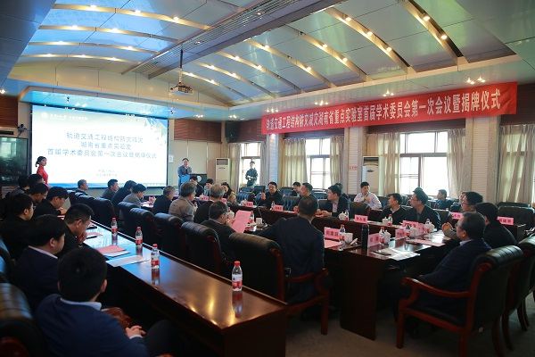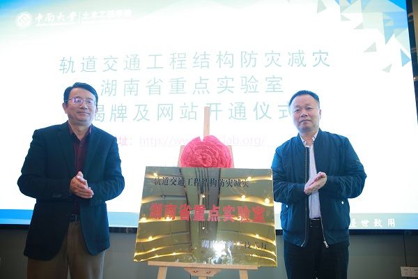 2021年4月17日上午,轨道交通工程结构防灾减灾湖南省重点实验室(Hunan Provincial Key Laboratory for Disaster Prevention and Mitigation of Rail Transit Engineering Structures)首届学术委员会第一次会议暨揭牌仪式在铁道校区世纪楼14楼会议室召开。中国工程院院士、湖南大学陈政清教授,西南交通大学副校长何川教授,国际桥梁及结构工程协会主席、同济大学葛耀君教授,湖南省科技厅基础研究处处长彭敬东,中南大学副校长陈春阳、科研部部长李启厚、副部长王敏,高速铁路国家工程实验室主任、中南大学教授余志武等实验室首届学术委员会成员、湖南省科技厅主管部门领导、校领导、学院领导、联合共建单位专家及实验室科研骨干等近50名专家学者参与了本次会议。会议由实验室学术委员会主任陈政清院士和中南大学科研部部长李启厚教授分阶段主持。