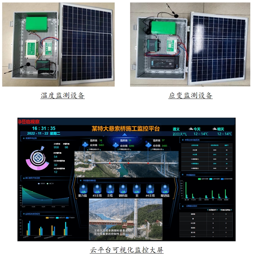 该监测设备与平台的研发工作已获得湖南铁院的大力支持,所制产品已在贵州、广西、湖南等地多座桥梁大体积混凝土承台温度监控、高墩高塔的应变施工监控中获得测试应用,并取得良好效果。