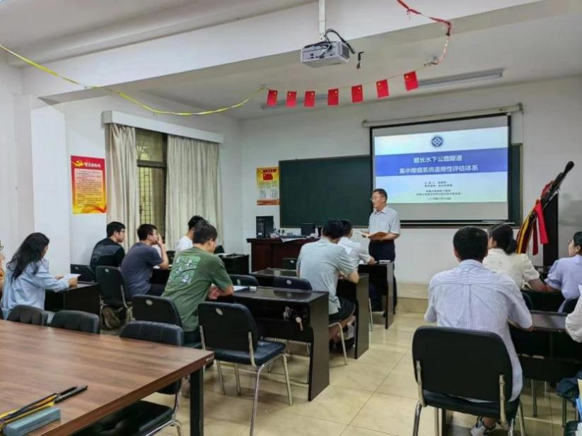 随后,刘邱林博士以“超长水下公路隧道集中排烟系统适用性评估体系”为主题作学术报告,在超长水下公路隧道通风排烟技术难点、集中排烟系统漏风模型、集中排烟系统极限使用长度以及其评估体系的应用范围等方面展开了详细汇报。