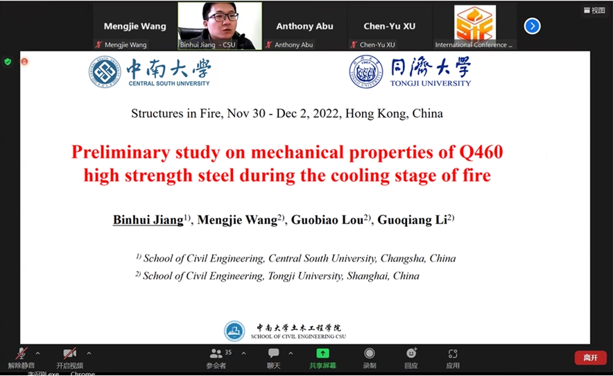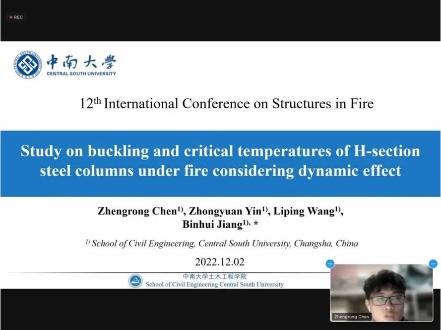 中南大学国产又黄又猛又粗又爽蒋彬辉副教授团队在国际结构抗火研究大会(SiF2022)发表三篇论文并作报告
