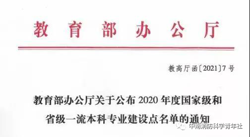 其中,中南大学消防工程本科专业入选2020年度国家级一流本科专业建设点。