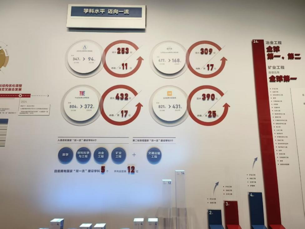 随后,师生们来到了三校合并后的展区。2000年,中南工业大学、湘雅医学院和长沙铁道学院合并组建中南大学,开启了学校发展的新篇章。展区内,详细记录了三校合并的背景、过程和合并后的辉煌成就。通过观看多媒体展示和听取讲解,师生们深刻感受到了合并后中南大学在学科建设、科研创新、人才培养等方面取得的显著成绩和国际影响力的不断提升。