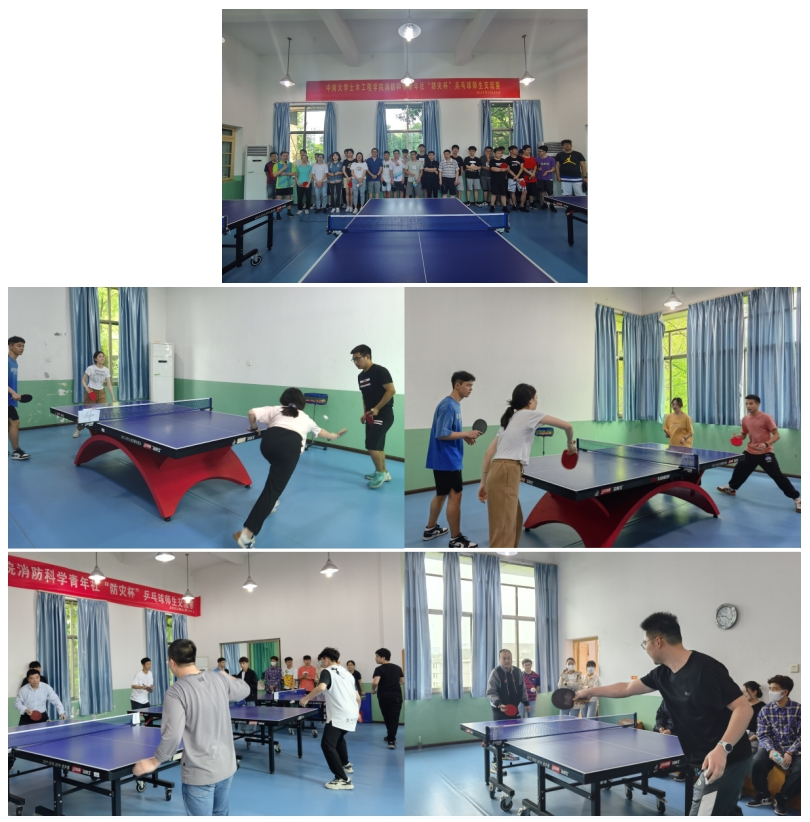 在每年我国防灾减灾日到来之际,为给师生提供放松身心、相互交流的机会,营造积极、健康、朝气蓬勃的校园运动氛围,消防科学青年社都会组织举办中南大学消防工程系“防灾杯”乒乓球师生交流赛,比赛项目包括男子单打、女子单打、男女混双以及趣味接力赛,活动兼具竞技性与娱乐性。比赛有输赢,青春无胜负,乒乓球师生交流赛充分展现了师生们奋力拼搏的体育精神,以及昂扬向上的精神面貌。让师生们在学习科研之余,既锻炼了身体,又促进了交流,进一步加深了师生情谊。
